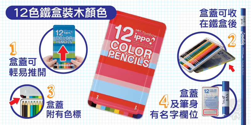 ippo! 是日語「一步」的意思,也是小朋友學習的第一步!Tombow蜻蜓牌聽見家長們的心聲,認為在學習過程中,開始是最重要的!因此全新開發了「ippo!一步」系列 – 針對兒童在學習過程依不同年齡及階段所研發的文具商品,加強外觀鮮艷活潑,更注重實用性及安全性。